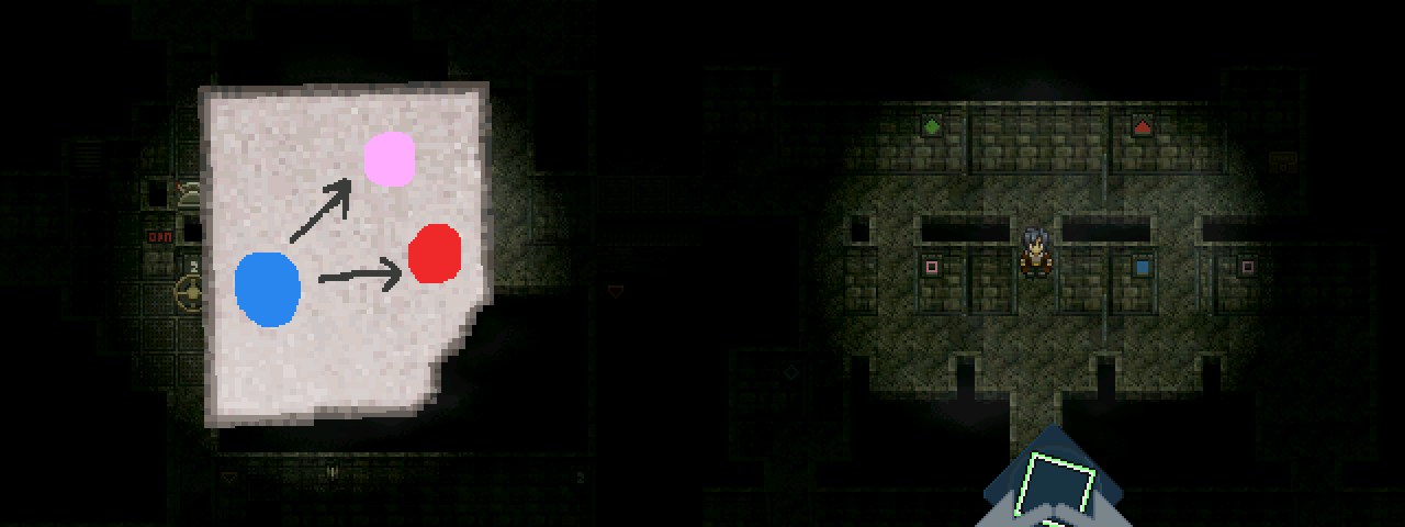 Like with thoughts for a puzzle in the Mansion, I conceptualised a puzzle for this castle. You were to engage with a screen like this mockup, which would unlock a treasure chest... that would drop through the floor. Fransisca would get pissed off, and you'd go into the sewer to get it, only for it to instead be used for the water puzzle.