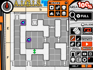 In a handful of the door mazes in AIGIS there are two FOEs nearby, forming a security duo. If the first FOE sees you in its line-of-sight, it'll activate the second one further down the hall. This one is a beefcake that'll destroy you if you run into it — which you will if you keep going forward, there's no way around it. So you gotta backtrack and beat up the first FOE instead, by navigating the door maze to get behind it.