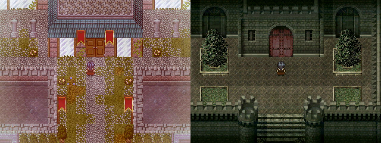 Besides being part of the vertical stack, I also wanted this dungeon to just be interesting on its own terms. I wanted it to be more than Bravely Default's idea of dungeons. I didn't end up implementing puzzles in Michael's mansion, but here I was adamant about trying something. I thought coloured doors would be simple enough... boy was I wrong.