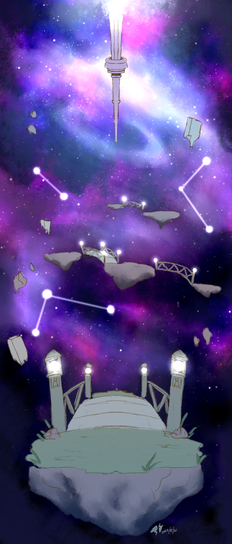 The Chinvat Bridge is a concept in Zoroastrianism, a sort of bridge to the afterlife. You are judged on your "righteousness" — affecting whether the bridge is thin and precarious, or wide and stable. Some interpretations also associate the Chinvat Bridge with the Milky Way.