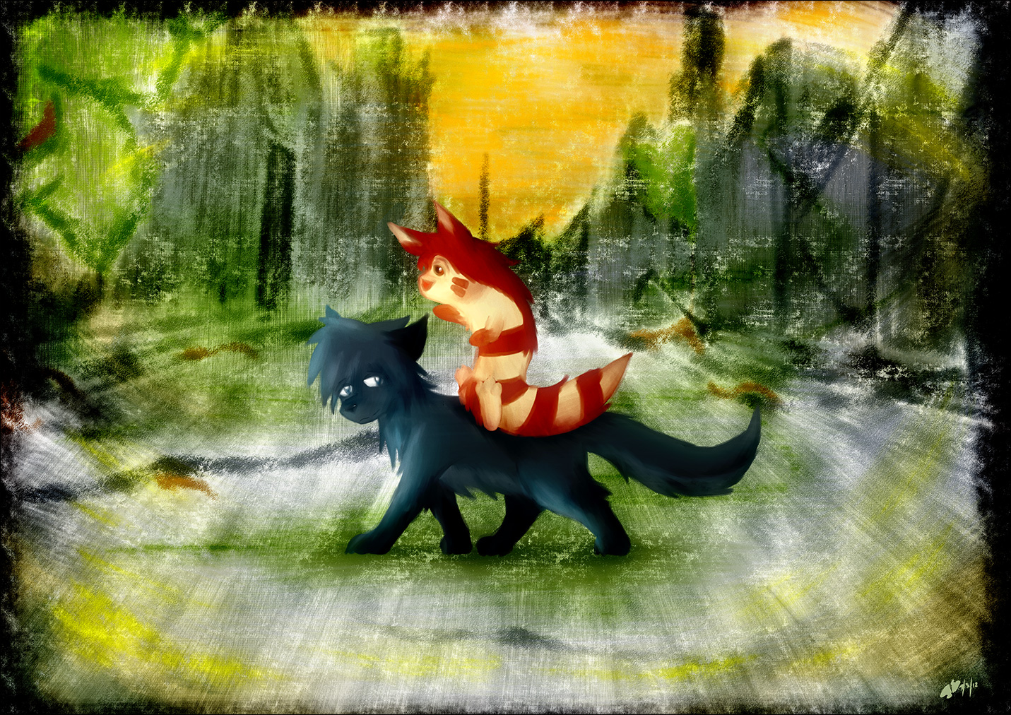 This was intended to be an experiment in stylistic dissonance so to speak. A background that appears drawn with crayons, yet of a scene a child may not draw. That didn't exactly happen.