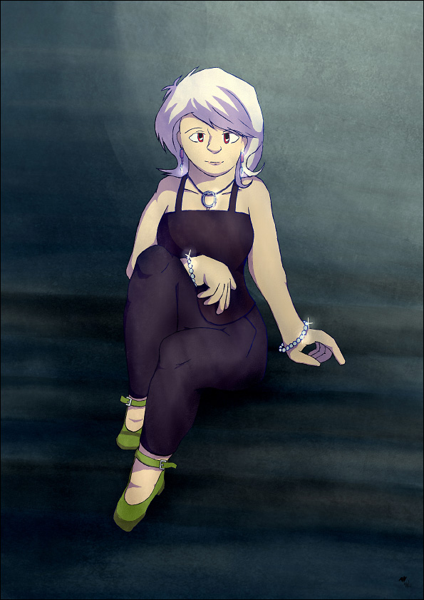 I took some creative liberties with the outfit because I started off with an older reference, and wanted to make sure I actually drew the legs. :T