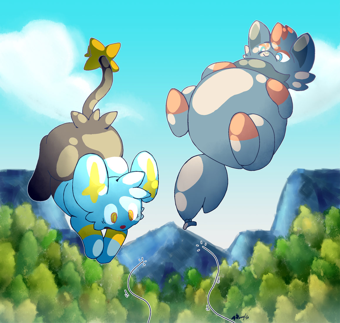 The subject of small-mon balloons came up and eventually somehow lead to this. I may have overdone the background a bit.